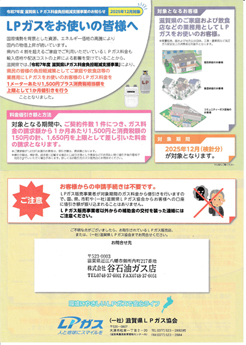 2025年12月検針分のプロパンガス料金につきまして、